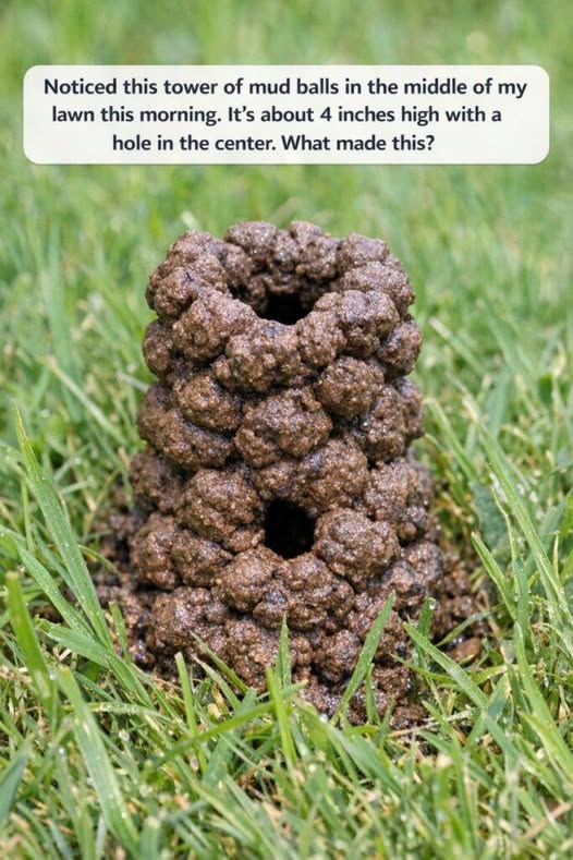 The appearance of these mud towers in your lawn can be quite perplexing, especially if you’re unfamiliar with their origin. These structures are cylindrical and formed by small balls of mud stacked upon one another, reaching heights of about 3 to 6 inches. The central hole, often half an inch wide, adds to their enigmatic appearance. Such formations are not random; they are the result of specific animal behavior, often seen in well-watered lawns or near bodies of water.